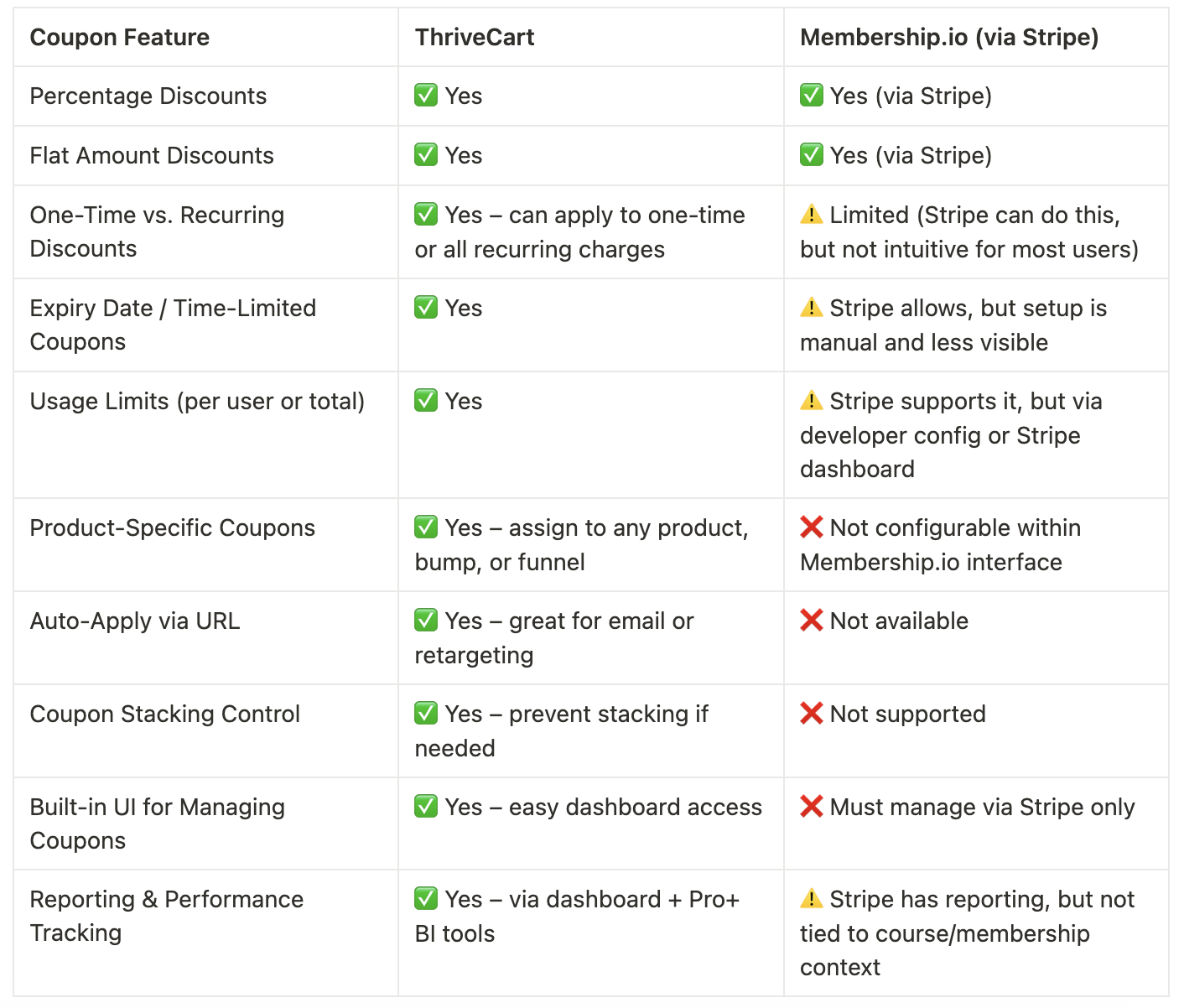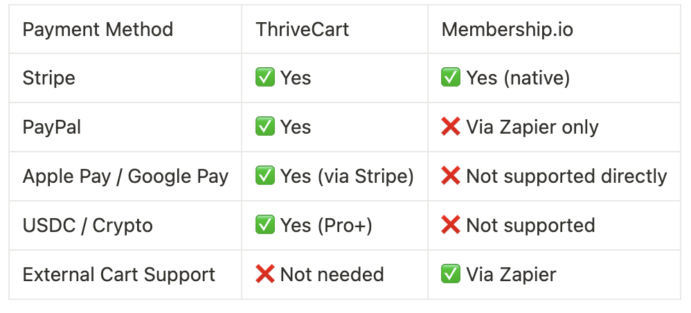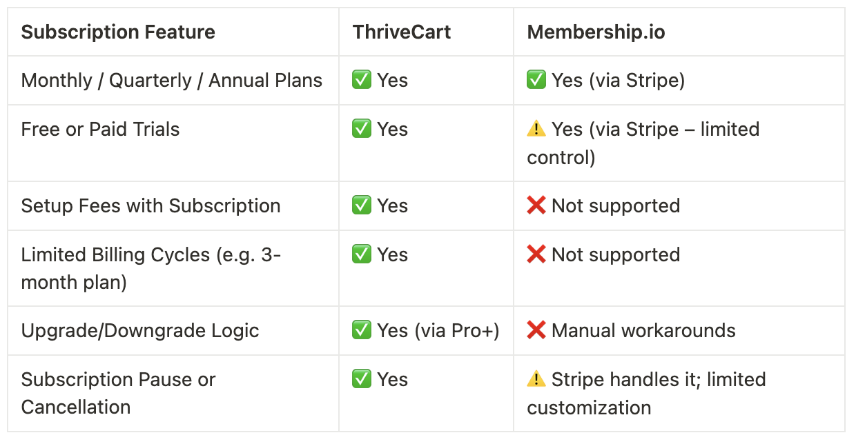 Here’s a side-by-side breakdown of what ThriveCart and Membership.io each do best: