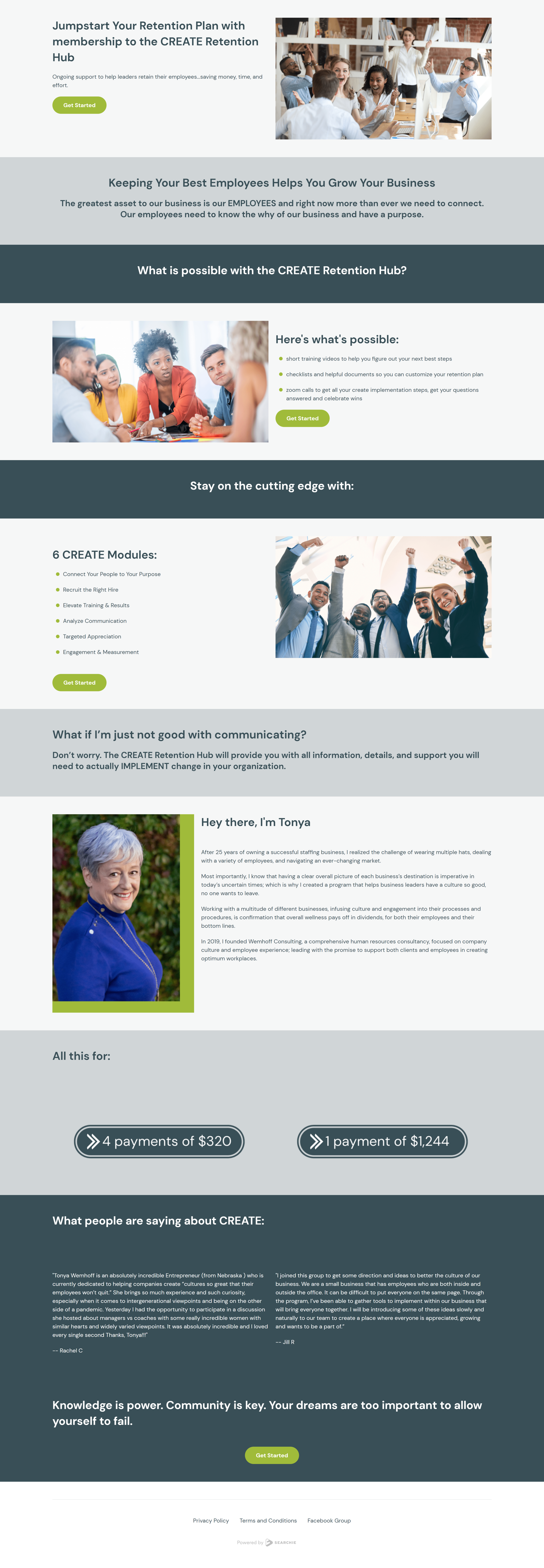 As part of my Build My Searchie Hub VIP Program, I quickly took the Hub that Tonya had created and took it over the finish line, keeping her vision and goals in mind. She was thrilled with the results! Take a look at her terrific offering, the CREATE Retention Hub: